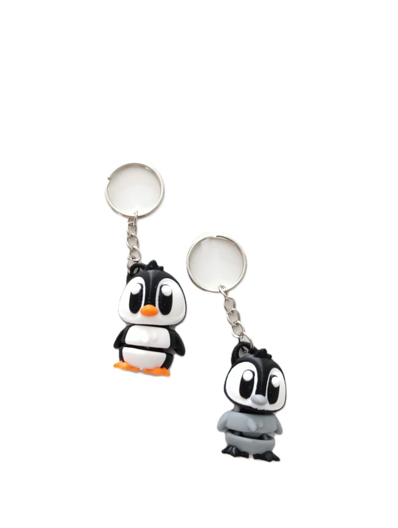 Llavero pingüino articulado. Al momento de realizar el pago podrás indicar, añadiendo una nota al pedido, el pingüino deseado. El naranja es el pingüino mamá y el gris es el pingüino bebé.