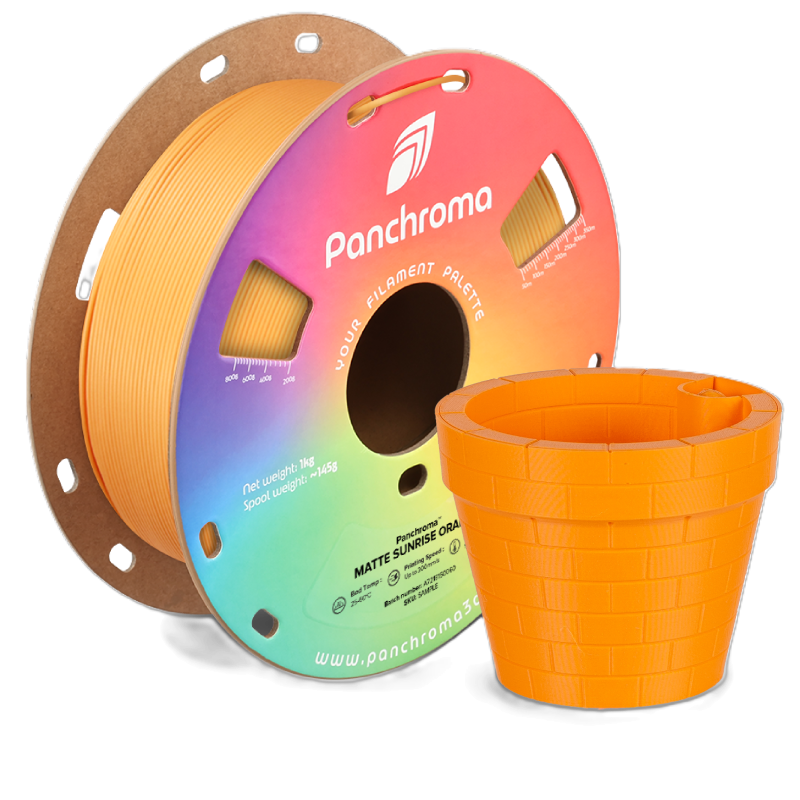 Panchroma™ Matte es un filamento de impresión 3D a base de bioplástico, diseñado para establecer un nuevo estándar para el PLA. Ofrece una facilidad de uso excepcional, una calidad de impresión fiable, altas velocidades de impresión y un rendimiento consistente en una amplia gama de impresoras. Hermoso acabado mate y colores vibrantes. Este filamento ofrece una superficie lisa y mate y está disponible en una variedad de colores intensos y vibrantes. Es perfecto para proyectos donde la apariencia es tan importante como el rendimiento. Renovado para mayor claridad. Anteriormente conocido como PolyTerra PLA, Panchroma™ Matte ofrece la misma gran selección de colores y calidad de impresión, solo que con un nombre más claro e intuitivo. Ideal para impresiones cotidianas y de exhibición. Elija Panchroma™ Matte para obtener impresiones sorprendentes con acabado mate que son fáciles de producir, perfectas para prototipos, modelos, elementos decorativos y proyectos de impresión 3D cotidianos.