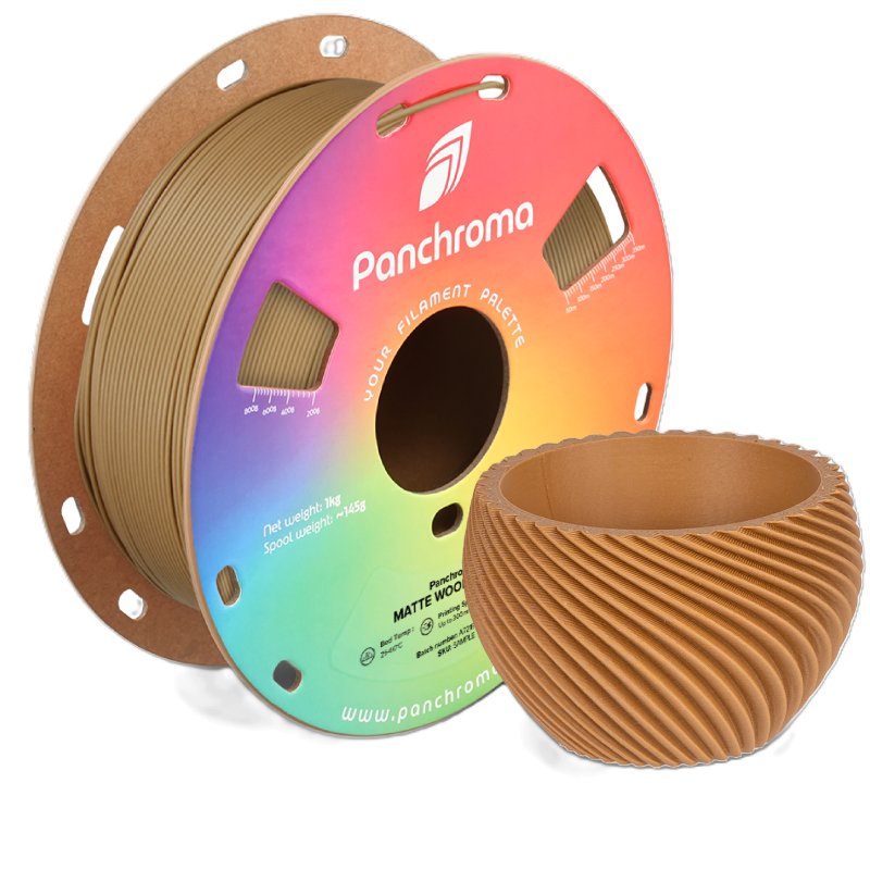 Panchroma™ Matte es un filamento de impresión 3D a base de bioplástico, diseñado para establecer un nuevo estándar para el PLA. Ofrece una facilidad de uso excepcional, una calidad de impresión fiable, altas velocidades de impresión y un rendimiento consistente en una amplia gama de impresoras. Hermoso acabado mate y colores vibrantes. Este filamento ofrece una superficie lisa y mate y está disponible en una variedad de colores intensos y vibrantes. Es perfecto para proyectos donde la apariencia es tan importante como el rendimiento. Renovado para mayor claridad. Anteriormente conocido como PolyTerra PLA, Panchroma™ Matte ofrece la misma gran selección de colores y calidad de impresión, solo que con un nombre más claro e intuitivo. Ideal para impresiones cotidianas y de exhibición. Elija Panchroma™ Matte para obtener impresiones sorprendentes con acabado mate que son fáciles de producir, perfectas para prototipos, modelos, elementos decorativos y proyectos de impresión 3D cotidianos.